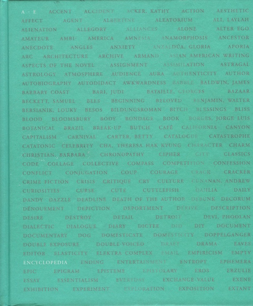 This volume features over 150 entries by 114 writers and artists, including an entry on KATHY ACKER in the form of a rebus by Anna Joy Springer; an entry on ASPECTS OF THE NOVEL by Rebecca Brown; a collaborative entry for BABBLE by Robert Glück and Jocelyn Saidenberg; Eileen Myles's one sentence entries for BUTCH, ANECDOTE, and EMPIRICAL; an entry on EPIC by Samuel R. Delany; DEADLINE from Carolee Schneemann; DIARY by The Quails' Julianna Bright; and ESSENTIALISM by kari edwards. Other contributors to Volume I include Brian Evenson, Thalia Field, Susan Bernstein, Joanna Howard and Michael Gizzi.